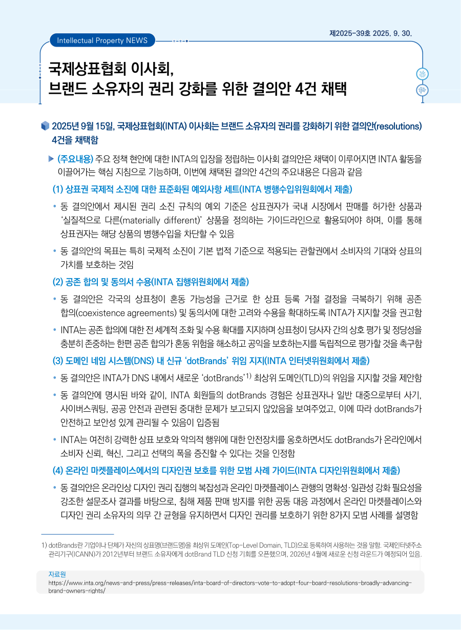 국제상표협회 이사회, 브랜드 소유자의 권리 강화를 위한 결의안 4건 채택