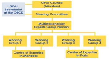 -(배경) 한국은 국제적 AI 논의 선도 및 글로벌 AI 위상강화를 위해 GPAI 참여의사를 표명했으며 프랑스와 캐나다가 승인하여 2020년 6월 2일 공식 창립회원국에 포함됨 -(목적) AI가 인권, 포용성, 다양성, 혁신, 경제성장, 사회적 이익에 기반하여 UN의 지속가능한 개발목표 달성에 기여할 수 있도록 관련 이해관계자들의 논의의 장을 제공하기 위함 -(주요내용) GPAI는 인권·포용성·다양성과 혁신, 경제성장에 근거해 다양한 인공지능 관련 이슈를 다루는 국제적 다중이해관계자적 협의체로, 한국을 포함해 프랑스, 캐나다, 호주, 독일, 일본, 유럽연합, 뉴질랜드 등 총 15개 창립회원1)이 함께 발족함 ∙ 캐나다 및 프랑스 정부는 몬트리올과 파리에 GPAI 전문센터를 설립하였고, 동 센터는 프로젝트의 행정 및 연구와 다중이해관계자전문가그룹 및 작업반 회의 등을 지원할 것이며 2020년 12월 제1차 총회가 캐나다에서 개최될 예정임 ∙ GPAI는 목표를 실현하기 위해 산업계, 시민사회, 정부기관, 학계 등 다방면의 전문가와 함께 책임감 있는 인공지능, 데이터 거버넌스, 미래의 일자리, 혁신과 상업화, 총 4가지 주제에 걸쳐 협업하고자 함 ∙ 특히 단기적으로 코로나19 극복을 위한 인공지능의 활용방안을 모색하는 전문가그룹을 구성하여 논의를 진행할 예정임