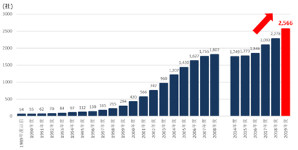 -(배경) 대학발 벤처는 대학 등의 혁신적인 연구 성과를 기초로 경제사회에 혁신을 가져오는 주체로 기대되는 가운데 본 조사는 대학발 벤처 설립 상황을 관측하는 동시에 사업 환경이나 요구 등을 조사하고 성장에 기여하는 요인을 분석하여 향후의 정책에 활용하기 위해 실시하고 있음 ∙ 또한 대학발 벤처가 실제로 사회에 혁신을 가져오기 위해서는 어떠한 팀을 구축할지가 열쇠가 되기 때문에 사업 분야에서 경험이 풍부한 인재를 획득하여 사업화를 가속하는 등, 특징적인 팀 구축을 실시하고 있는 대학발 벤처의 사례를 정리함 -(주요내용) 동 조사 결과, 신규 대학발 벤처 288개가 증가하여 총 2,566개의 대학발 벤처가 존재하는 것으로 확인되며 이는 2019년 9월 기준 역대 최고 대학발 벤처 수 및 신규 설립 건수를 기록함 ∙ 대학별 설립 건수는 도쿄대학이 가장 많았고, 교토, 오사카, 토호쿠, 규슈 등의 대학발 벤처도 증가하여 그 차이가 계속하여 좁혀지고 있음