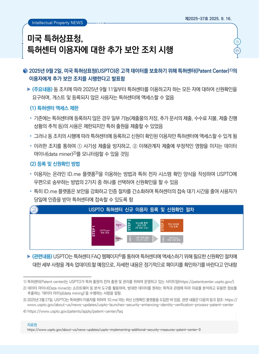 미국 특허상표청, 특허센터 이용자에 대한 추가 보안 조치 시행
