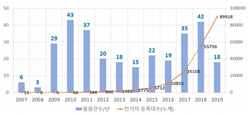 ● 2020년 5월 6일, 특허청(KIPO)은 올해 3월 기준 전기자동차 등록대수가 10만대를 돌파한 가운데 전기자동차 관련 전력서비스 특허출원이 증가하고 있다고 밝힘