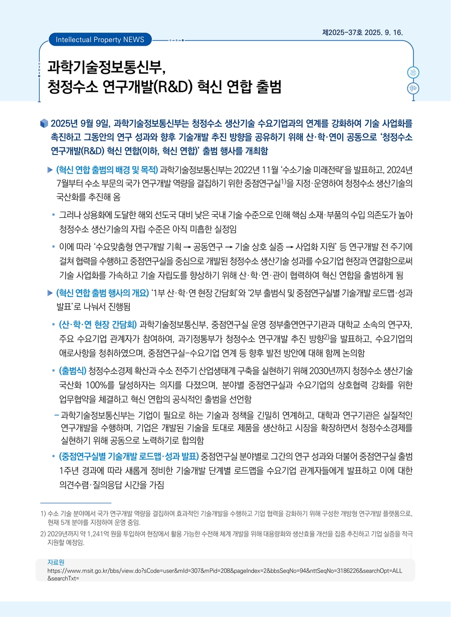 과학기술정보통신부, 청정수소 연구개발(R&D) 혁신 연합 출범