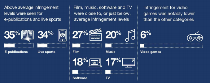 -(배경) UKIPO는 2012년부터 영국의 통신·방송 규제 기구인 Ofcom(Office of Communication)과 공동으로 영국의 12세 이상 국민을 대상으로 온라인 저작권 이용에 관한 설문조사를 시행해 옴 -(주요내용) 조사결과 평균 저작권 침해율은 25%로, 각 항목에서 불법적인 콘텐츠 이용의 빈도는 전년대비 유사하거나 증가함 ∙ 편리함, 풍부한 콘텐츠, 비용의 절감의 측면에서 온라인 콘텐츠의 불법 다운로드 등을 이용하는 것으로 나타났으며, 법규정의 모호성도 온라인 저작권 침해를 용이하게 하는 요소 중 하나임 ∙ 응답자의 25%는 지난 3개월 동안 위법한 방법으로 온라인 콘텐츠를 이용함 ∙ 평균 저작권 침해율을 넘어서는 콘텐츠 분야는 e-북(35%)과 스포츠 중계(34%)임 ∙ 영화(27%), 음악(20%), 소프트웨어(18%), TV(17%)와 같이 스트리밍 방식의 구독 서비스가 활성화된 분야의 불법콘텐츠 이용률은 평균 저작권 침해율과 유사함 ∙ 한편 비디오 게임에서 저작권 침해는 6%로 매우 낮음