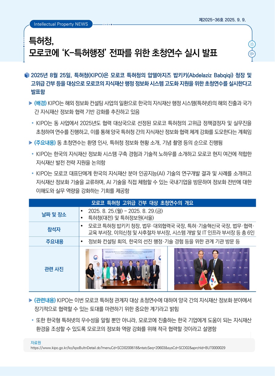 특허청, 모로코에 ‘K-특허행정’ 전파를 위한 초청연수 실시 발표
