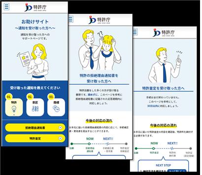 - (배경) JPO는 2018년 8월부터 디자인 경영을 이용한 행정 서비스의 개선을 실시하고 있으며,1) 디자인 경영의 프로젝트팀은 ‘중소기업 등의 지식재산 담당자 지원’이라는 과제를 설정하고, 그러한 지식재산 담당자의 대부분이 고민하고 있을 ‘거절 이유 통지서’에 대한 대응을 지원하는 방법을 검토해 옴 - (주요내용) JPO에 특허·디자인·상표를 출원한 후에 ‘거절 이유 통지서’나 ‘등록결정’ 등의 통지가 송부되는데 본 ‘Help 사이트’에서는 이러한 통지의 해설이나, 통지를 받은 후의 대응을 간결한 문장으로 양식 견본도 참고하면서 설명하며 다음에 무엇을 해야 하는지 알기 쉽게 안내하고 있음 ∙ 또한 스마트폰에서도 사용하기 쉬운 사양으로 되어 있어 부담없이 사용이 가능함 - (관련내용) 추가적으로 2020년 4월부터 ‘거절 이유 통지서’나 ‘등록결정’에 첨부되는 ‘주의 사항’에 QR코드를 추가하여 본 사이트의 접근을 용이하게 할 예정임