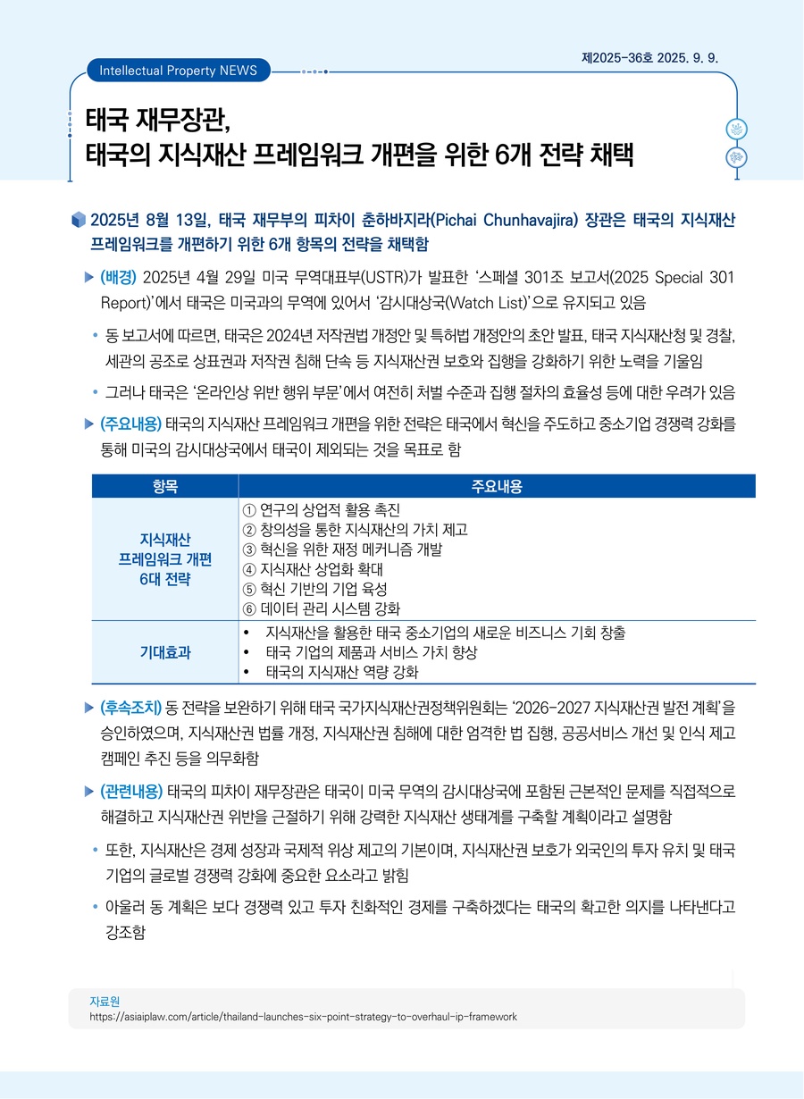 태국 재무장관, 태국의 지식재산 프레임워크 개편을 위한 6개 전략 채택