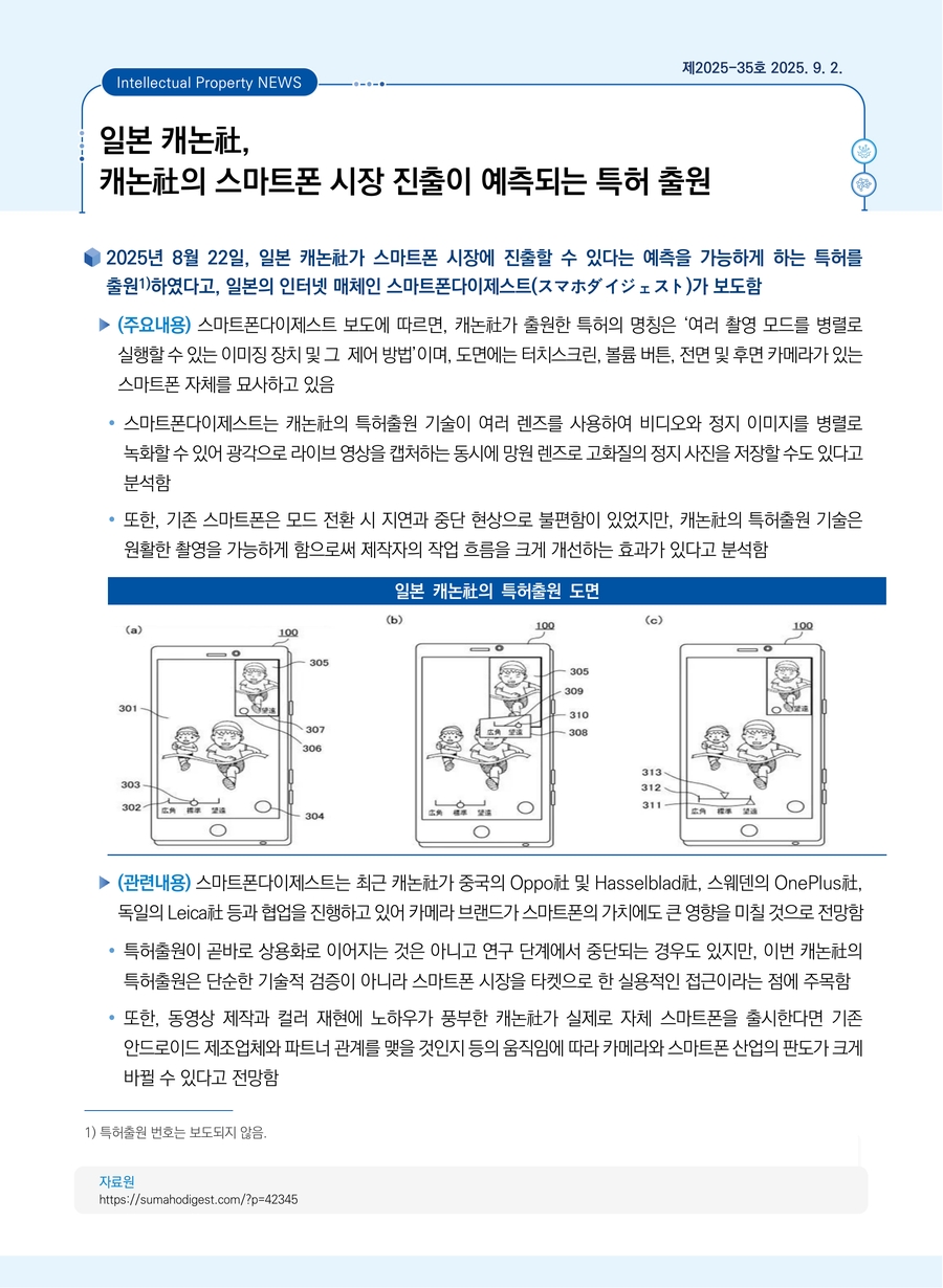 일본 캐논社, 스마트폰 시장 진출을 예측하게 하는 특허 출원