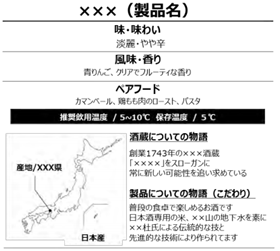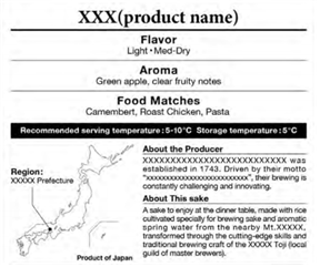 • 2019년 8월 7일, 일본 무역진흥기구(JETRO)는 일본 술의 수출 증대를 위한 ‘표준 뒷면 라벨(標準的裏ラベル)’ 및 ‘표기 가이드(表記ガイド)’를 공표함