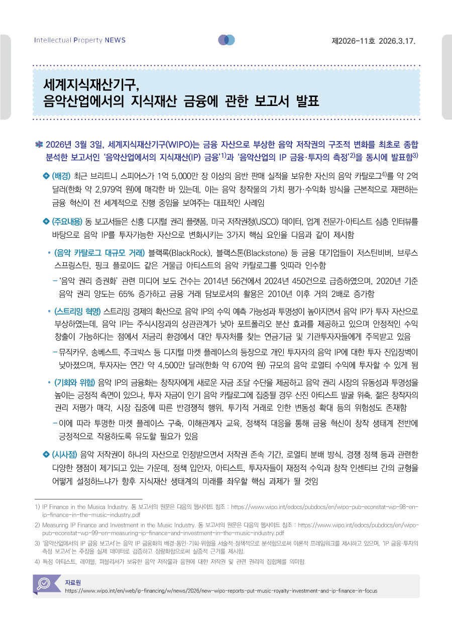 세계지식재산기구, 음악산업에서의 지식재산 금융에 관한 보고서 발표