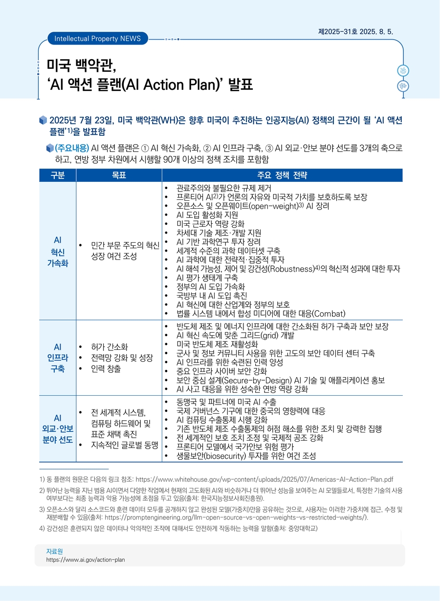 | 미국 백악관, ‘AI 액션 플랜(AI Action Plan)’ 발표 |