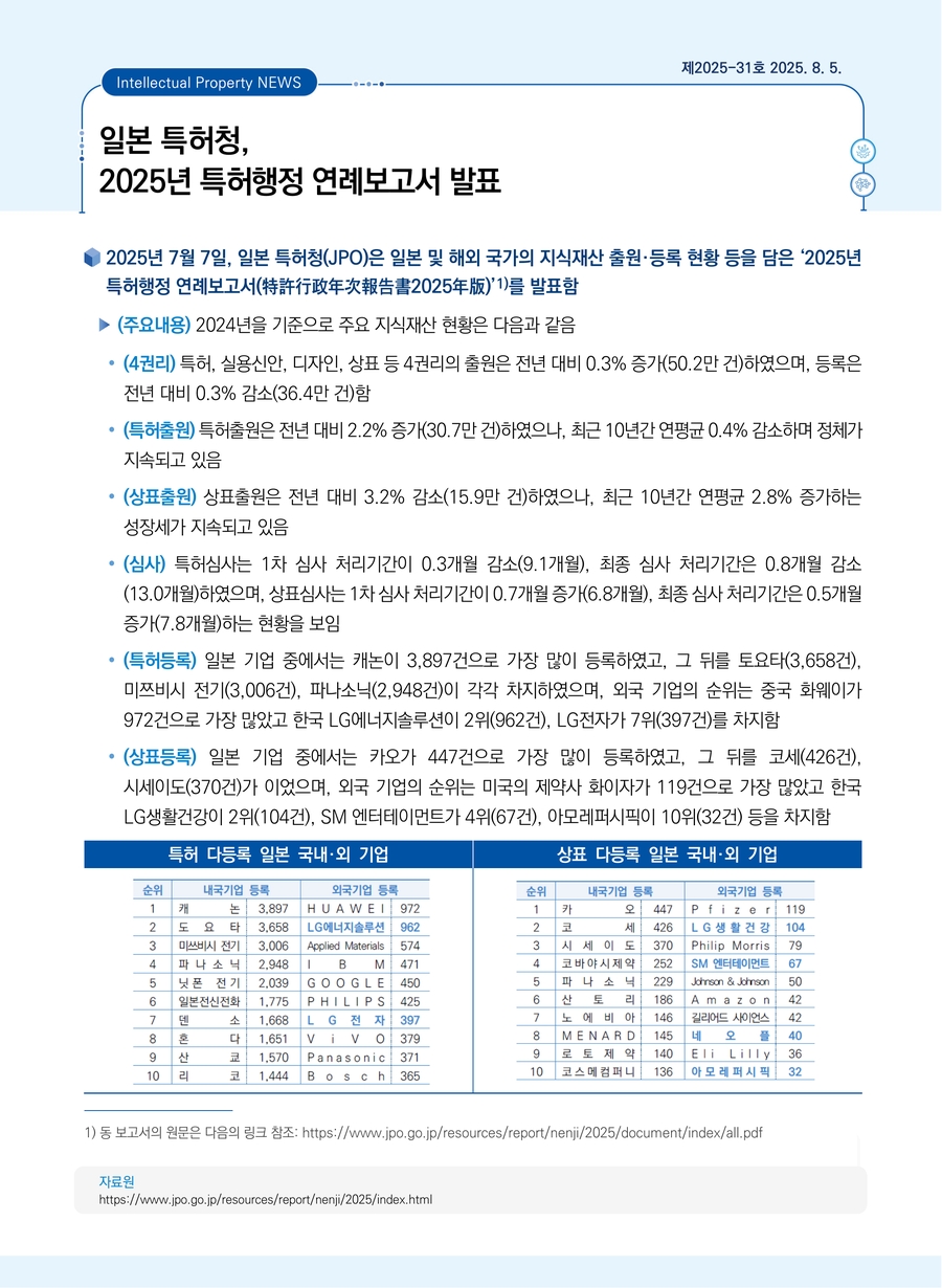 | 일본 특허청, 2025년 ‘특허행정 연례보고서’ 발표 |