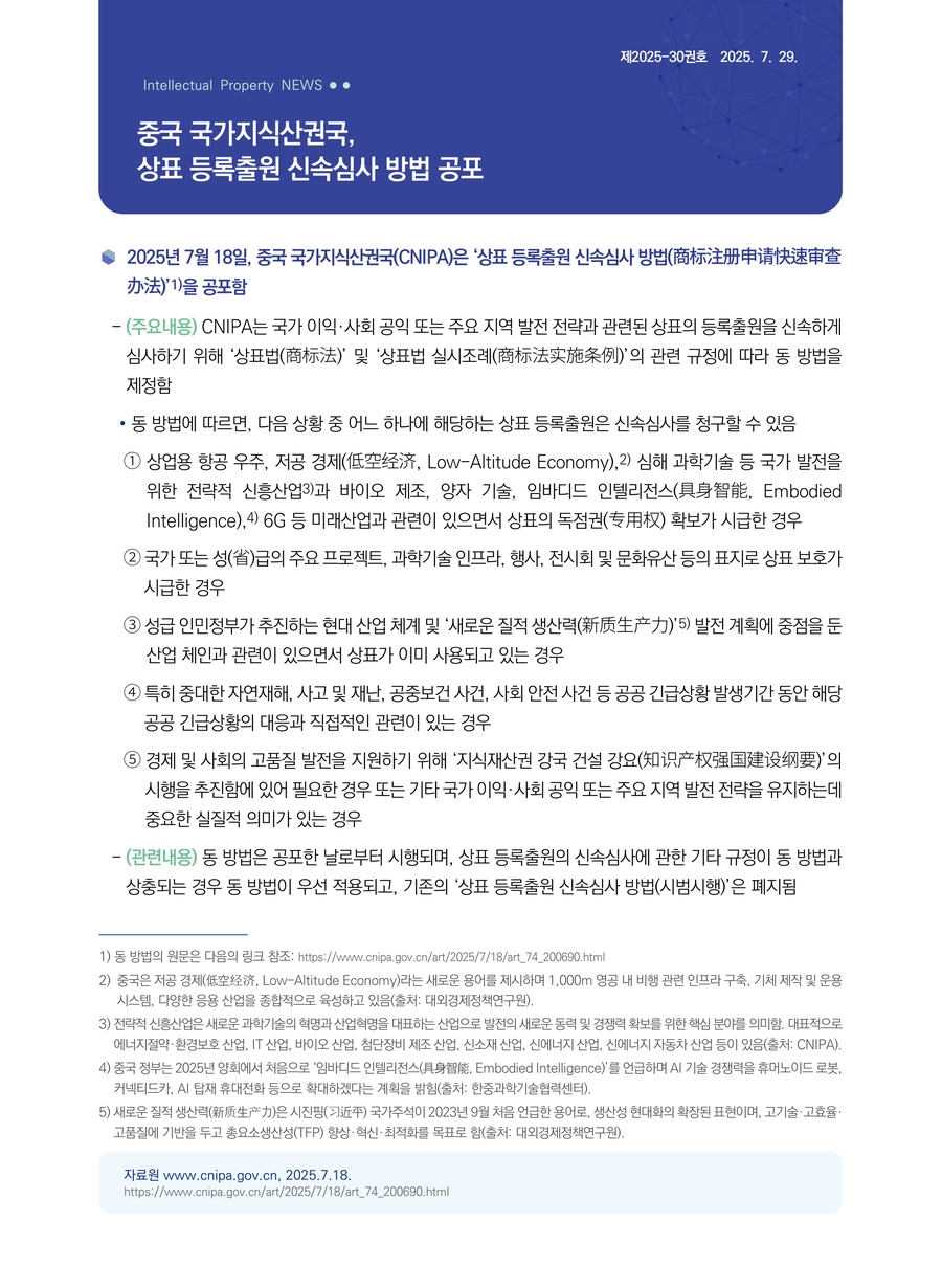 | 중국 국가지식산권국, 상표 등록출원 신속심사 방법 공포 |