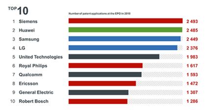 | 유럽 특허청, 2018년 특허출원 현황 발표 |