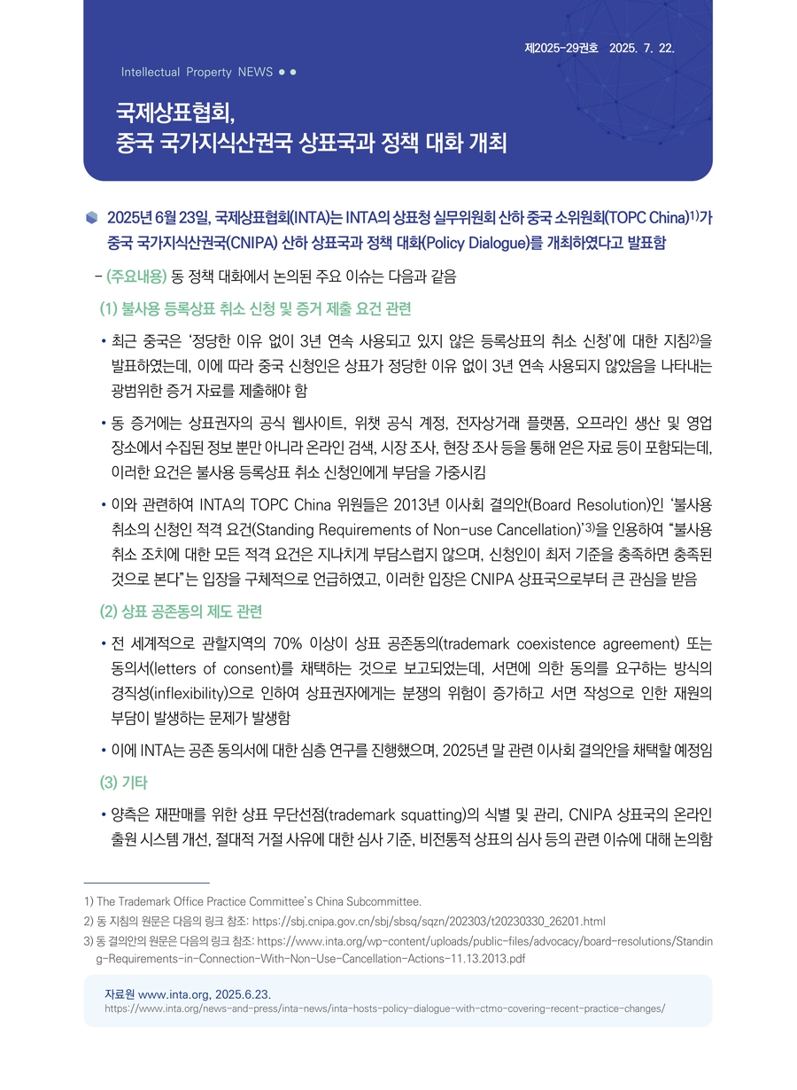 | 국제상표협회, 중국 국가지식산권국 상표국과 정책 대화 개최 |