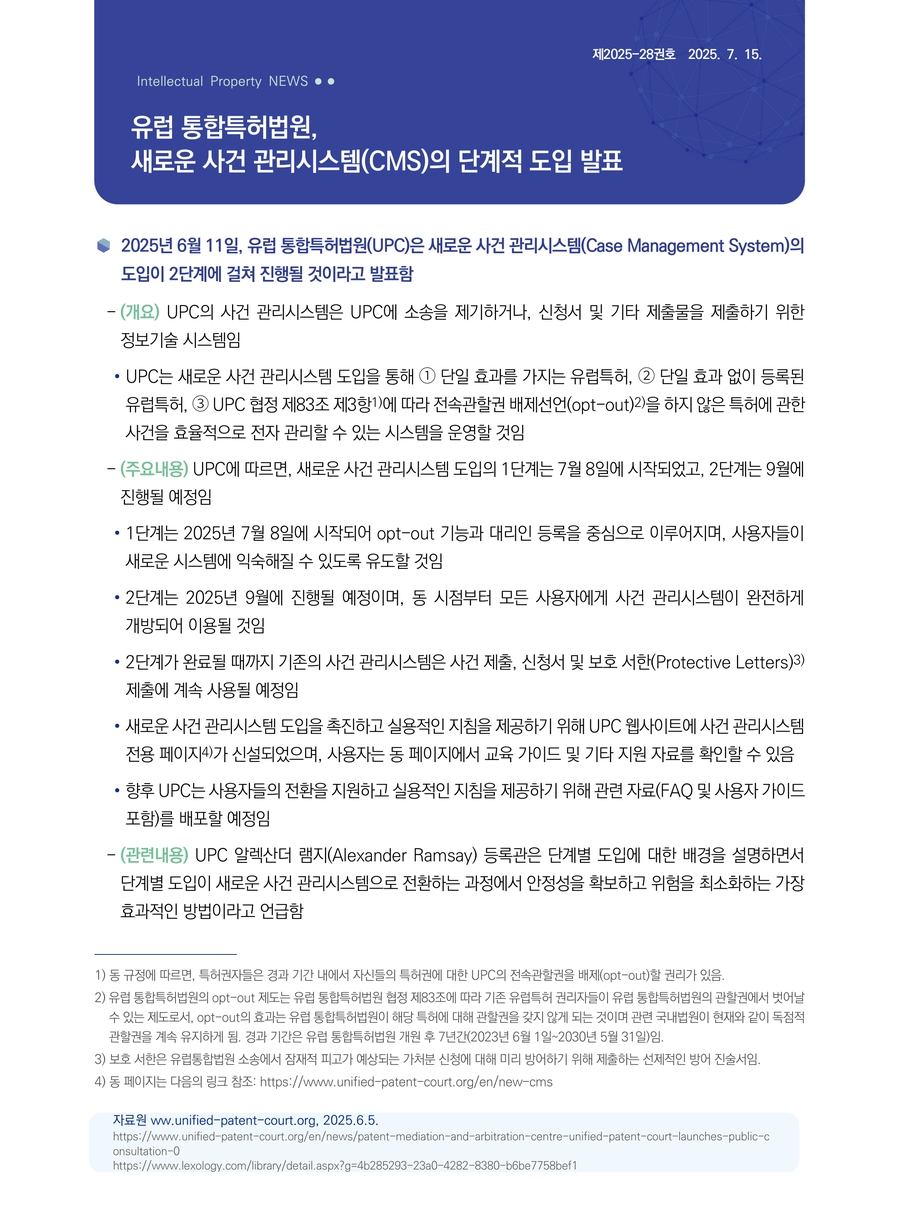 | 유럽 통합특허법원, 새로운 사건 관리시스템(CMS)의 단계적 도입 발표 |