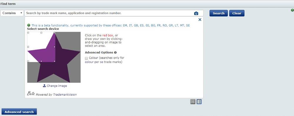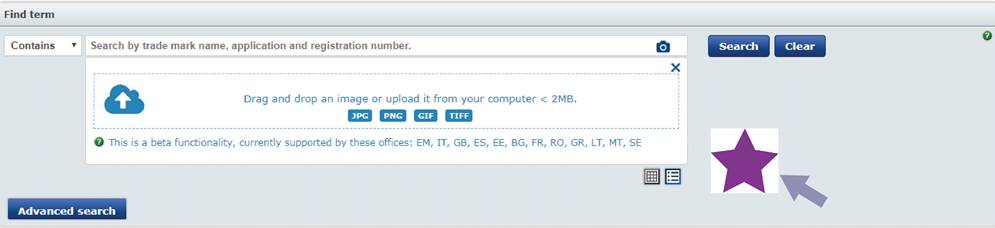 - (개요) 시각 검색 기능은 2017년 영국 지식재산청, 프랑스 지식재산청과 EUIPO에 의해서 최초로 시행되었으며, 3국의 이번 서비스 제공을 통해 총 11개 국가의 상표 정보가 TMview 시각 검색 기능을 통해 제공되게 됨3) - (DB 확대) 이탈리아, 스웨덴, 몰타의 상표 주무기관이 TMview에 등록한 상표 정보의 시각 검색이 가능해졌고, 또한 TMview의 시각 검색 DB가 확대되었음 ∙ 2018년 12월 3일, 몰타 국가지식재산청(national intellectual property office of Malta, IPRD)은 TMview로의 서비스를 개시함 ∙ 2018년 12월 17일, 이탈리아 특허상표청(Italian Patent and Trademark Office, UIBM)과 스웨덴 특허상표청(Swedish Office of Patents and Trade Marks, PRV)은 TMview로의 서비스를 개시함 - (시각검색) 시각 검색 기능은 3가지 단계를 통하여 사용될 수 있으며 각 단계별 설명은 다음과 같음 ∙ (1단계) 파란색 사진기 모양의 아이콘을 클릭하면 ‘Drag and drop or upload image(이미지 끌어오기 및 삽입)’란 문구가 나타남 ∙ (2단계) JPG, PNG, GIF 그리고 TIFF 총 4가지 형식의 이미지 파일을 검색창으로 끌어오거나 삽입할 수 있으며, 박스 우측의 클라우드 아이콘을 클릭하여 컴퓨터에 저장되어 있는 이미지를 삽입할 수 있음 ∙ (3단계) 이미지를 삽입하면 빨간색 글씨로 표기된 부분이 나타나고 이 부분을 클릭함으로써 검색이 가능해지며, 하단 부분의 아이콘 클릭을 통해 검색결과를 갤러리 모드 또는 리스트 모드로 표현할 수 있고 각각의 상표는 컬러로 검색 가능함