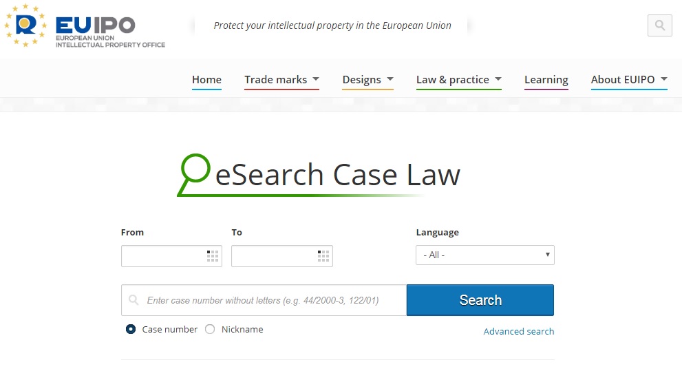 1) 동 사이트의 주소는 다음을 참조: https://euipo.europa.eu/eSearchCLW/ 2) https://euipo.europa.eu/eSearchCLW/#advanced |