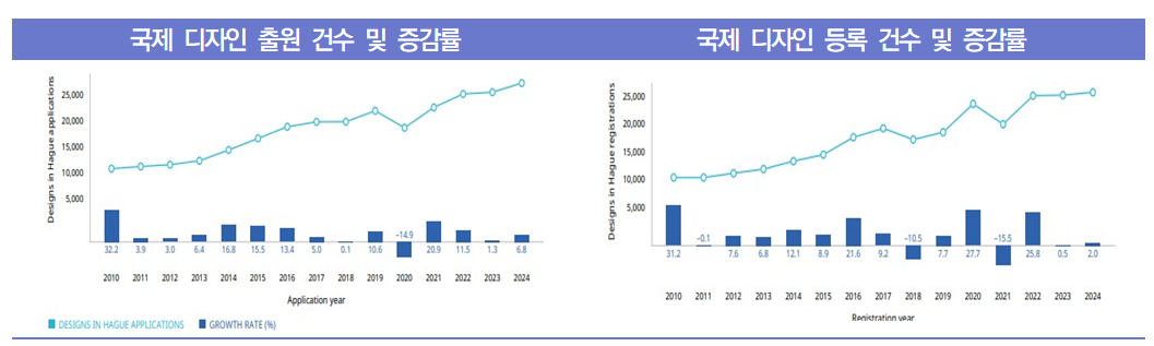 ∙ 2025년 6월 6일, 세계지식재산권기구(WIPO)는 2024년 국제 디자인 출원 및 등록 현황을 조사한 ‘2025년 헤이그 연례보고서(Hague Yearly Review 2025)’1)를 발표함