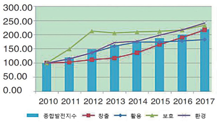 - (배경) SIPO 지식재산권발전연구센터(知识产权发展研究中心)는 매년 전국의 지식재산권 발전현황을 조사하여 보고서로 발표해옴1) ∙ 동 보고서는 지식재산권 창출·활용·보호·환경의 4개 분야에 대한 전국 및 각 성(省)급 지역의 발전현황을 전반적으로 평가·분석함 ∙ 또한 과학기술 자원 투자 및 지식재산권 창출수준이 비교적 높은 40개 국가의 지식재산권 능력, 성적, 환경 등 항목에 대한 국제비교를 수행함 - (주요내용) 동 보고서에 따르면 최근 중국의 지식재산권 종합 발전수준은 점진적으로 향상되었고, 지식재산권 창출·활용·보호·관리·서비스 방면에서 뚜렷한 진전이 있었음 ∙ 2017년 중국 지식재산권 종합 발전지수는 218.3점으로 전년 대비 9.0% 증가함 ∙ 2017년 지식재산권 창출 분야에서는 급격한 성장이 있었고, 활용에서는 비교적 완만하게 성장하였으며 보호 수준은 안정적으로 향상되었고 환경 분야에서는 눈에 띄는 성장이 나타남 ∙ 국제비교에서 중국의 지식재산권 발전수준은 세계 상위권을 기록하였는데, 지식재산권 발전현황 총 지수는 2015년 57.73점에서 2016년 61.91점으로 향상되어 지식재산권 강대국과의 격차가 좁혀짐 ∙ 2012년부터 2016년까지 5년간 중국의 지식재산권 보호 및 활용수준이 빠르게 성장하였으나, 세계 수준과 비교했을 때 중국의 지식재산권 환경지수는 여전히 낮은 수준인 29위를 기록함 ∙ 이처럼 비교적 열악한 지식재산권 환경은 중국 지식재산권 발전의 주요 걸림돌로 작용함