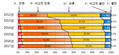 - (배경) JPO는 일본 기업의 해외 진출 및 국제경쟁력 강화, 혁신 촉진을 목적으로 이용자의 의견을 정확히 파악하여 이를 바탕으로 심사품질을 개선을 도모하고자 2012년부터 특허심사 품질에 대한 이용자 선호도 조사를 실시하고 있음 ∙ (조사대상) 총 725명의 이용자, 2,701건의 출원을 대상으로 특허심사 전반적인 품질과 개별 출원의 품질, PCT 출원의 국제조사 등의 전반적인 품질과 개별 PCT 출원의 국제조사 등의 품질에 대한 설문조사를 실시하였고 응답률은 평균 약 90%를 기록함 ∙ (조사방법) 심사의 품질 전반과 개별 출원에 대하여 5단계(만족, 비교적 만족, 보통, 비교적 불만, 불만)로 나누어 이용자의 평가를 받음 - (주요내용) 동 보고서는 특허심사의 품질 전반, 개별 출원의 특허심사의 품질, PCT 출원의 국제조사 등 품질 전반, 개별 PCT 출원의 국제조사 등 품질에 대해 조사하였고 주요내용은 다음과 같음 ∙ 특허심사의 전반적인 품질에 대한 긍정적인 평가는 58.3%를 기록함 ∙ PCT 출원의 국제조사 등의 전반적인 품질에 대한 긍정적인 평가는 54.2%를 기록하였고, 특히 ‘거절 이유 통지 등의 기재에 대한 이해도(67.2%)’, ‘일본 내 특허 문헌 조사(65.7%)’, ‘면접, 전화 등의 심사관과의 커뮤니케이션(62.1%)’ 항목에 대해서는 긍정적인 평가가 60% 이상을 기록함 ∙ 2017년 목표로 설정한 ‘커뮤니케이션에 대한 이용자의 긍정적인 평가 60% 이상 달성’에 대해서는 ‘면접, 전화 등의 심사관과의 커뮤니케이션’의 긍정적인 평가 62.1%를 기록하여 달성함 - (향후과제) JPO는 이용자가 중요시하는 ‘심사의 균일성’에 대해 품질 유지 및 향상을 도모하겠다고 밝힘