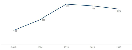 - (배경) 중국 정부의 엄격한 자본 통제와 미국의 규제로 인하여 중국 투자 기업으로부터 미국 내 투자가 감소함 ∙ 2017년 중국은 미국에 대한 투자 감소를 가속화시키는 해외 투자에 대한 규제를 발표하였으며, 이는 중국 정부가 자금에 대한 통제를 강화하고 위안화를 안정화시키려는 목적으로 평가됨 ∙ 또한 최근 미국의 대미외국인투자승인위원회(Committee on Foreign Investment in the United States, CFIUS)는 잠재적인 국가안보위협이라는 사유로 중국 투자 기업의 미국 기업 인수와 관련하여 여러 건의 부적격 결정을 내린 바 있음 - (주요내용) CB Insight社의 자료에 따르면, 중국 투자 기업들의 미국 기술 기업에 대한 투자는 2015년 최고치보다 2017년 12% 하락한 것으로 나타남 ∙ 미국 기술 기업에 투자한 중국 투자는 2015년 최대치를 기록한 후 2년 연속 감소함