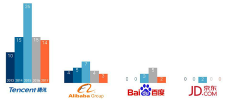 • 2018년 2월 20일, 미국 시장조사기관인 CB Insight社는 미국 기술 기업에 대한 중국의 투자가 감소 추세라고 발표함