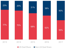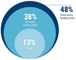 - (개요) CB Insight社는 2018년 산업과 경제를 재구성하고 있는 주요 AI 동향을 미국과 중국의 경쟁, 미래 방위를 위한 AI, 인공지능 비서 Alexa1), 아마존社·구글社·마이크로소프트社의 기업 AI 독점, 화이트칼라 자동화 등을 조사하여 발표함 - (주요내용) 동 발표의 주요내용은 다음과 같음 ∙ 미국은 AI 관련 스타트업 기업수와 총 주식 거래 비중에서 여전히 전세계적으로 우위에 있으나, 점점 그 비중이 낮아지는 추세로 나타남