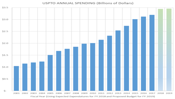• 2018년 2월 13일, 미국 특허상표청(USPTO)은 2019 회계연도1) 예산안을 발표함