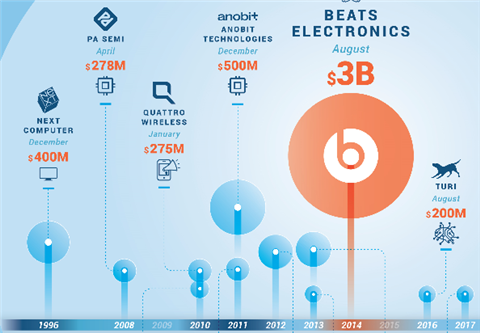 • 2017년 12월 4일, 미국 시장조사기관인 CB insight社는 Apple社의 M&A 활동을 조사하여 발표함