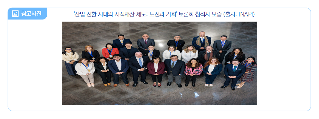 - (주요내용) 2025년 5월 7일부터 8일까지 개최된 동 토론회에서 참석자들은 인공지능(AI)과 협업형 비즈니스 모델 등 신흥기술의 영향을 중심으로 중남미 지역의 지식재산 제도에 보다 유연하게 접근하여 혁신 생태계의 흐름에 부합하도록 할 수 있을지에 대해 논의함 (1) 목적 ∙ 급변하는 기술 환경과 새로운 비즈니스 모델 속에서도 IP 시스템이 효과적인 보호 수단으로 기능할 수 있도록 논의하기 위함 (2) 참석자 ∙ 중남미 각국의 산업재산청 고위 관계자들, 세계지식재산기구(WIPO) 관계자들, 칠레의 혁신 생태계를 대표하는 주요 인사들이 참석함 (3) 주요 논의 주제 ∙ 동 토론회에서 참석자들은 ① 기술 융합으로 인한 새로운 과제, ② AI의 대두, ③ 점점 짧아지는 혁신 주기, ④ 보다 개방적이고 협업적인 IP 모델에 대한 수요 증가 등을 주제로 논의를 진행함 ∙ 이 과정에서 참석자들은 중남미 지역 차원의 모범 사례를 공유하고 국가 간 협력의 새로운 방식을 모색하는 기회를 가짐 ∙ 또한, 공공-민간 파트너십 확대, 신기술에 대한 인식 제고, 칠레 산업재산청-혁신 기업 연계 강화의 중요성에 대해 의견을 교환함