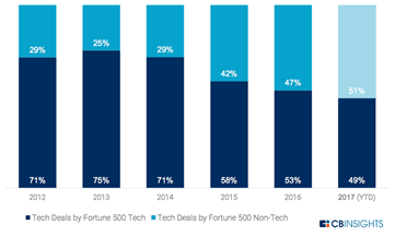 • 2017년 8월 17일, 미국 시장조사기관인 CB insight社는 ‘포춘지 선정 500대 기업의 기술 투자 및 M&A 보고서(Fortune 500 Tech Investment And M&A Report)’를 발표함