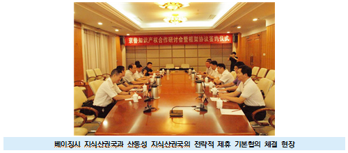 | 중국 베이징시 지식산권국, 산동성 지식산권국과 업무 협력을 위한 협의 체결 |