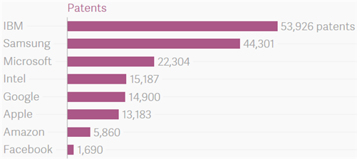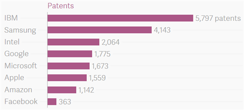 • 2017년 8월 3일, 미국의 경제전문 보도매체인 Quartz社는 2017년 IT 기업별 미국 특허 등록 현황을 발표함
