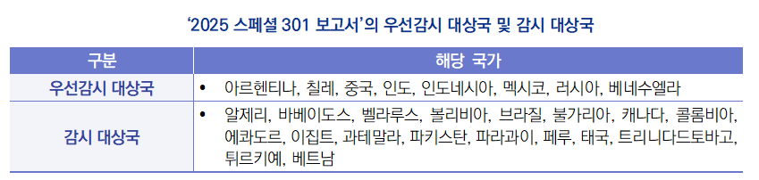 | 미국 무역대표부, ‘2025 스페셜 301(Special 301)’ 보고서 발표 |