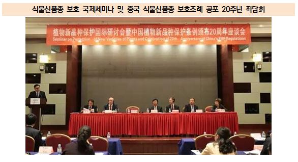 • 2017년 4월 12일, 중국 농업부(农业部)는 ‘식물신품종 보호 국제세미나(植物新品种保护国际研讨会)’ 및 ‘중국 식물신품종 보호조례 공포 20주년 좌담회(中国植物新品种保护条例颁布20周年座谈会)’를 개최함