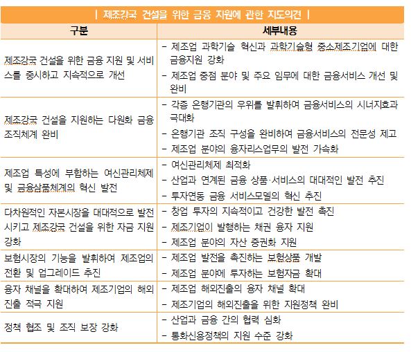 • 2017년 3월 29일, 중국 인민은행(中国人民银行) 등 5개 기관은 ‘제조강국 건설을 위한 금융지원에 관한 지도의견(关于金融支持制造强国建设的指导意见)’을 발표함