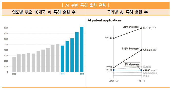 • 2017년 2월 1일, 일본 Nikkei社는 세계 주요국의 인공지능(Artificial Intelligence, AI) 관련 특허 출원 현황1)을 조사하여 발표함