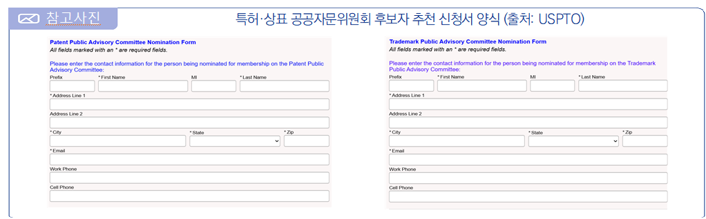 | 미국 특허상표청, 공공자문위원회 공석에 대한 후보자 추천 모집 |