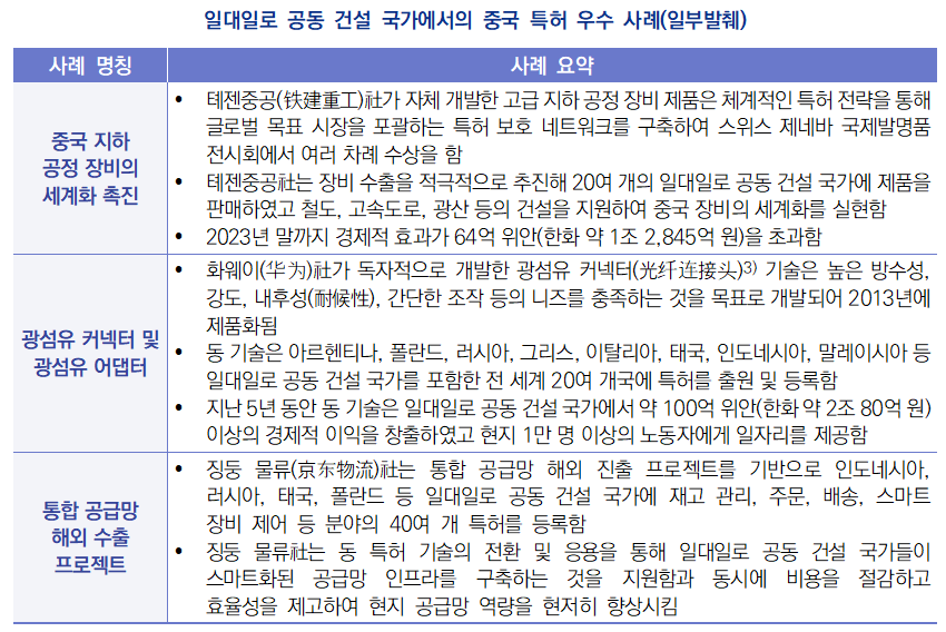 ∙2025년 3월 13일, 중국 국가지식산권국(CNIPA)은 ‘일대일로(一带一路)1) 공동 건설 국가 및 지역에서의 중국 특허 우수 사례 수집 및 선정에 관한 통지’2)를 발표함