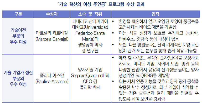 | 칠레 산업재산청, ‘기술 혁신의 여성 주인공’ 프로그램에 따른 수상 결과 발표 |