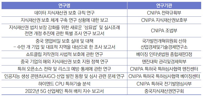 | 중국 국가지식산권국, 지식재산권 우수 조사 연구 보고서 및 우수 연구 성과 선정 |