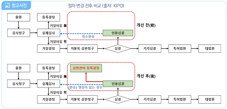 ∙ 2024년 12월 31일, 특허심판원은 특허와 디자인등록에 대한 거절결정불복심판에서 등록결정이 타당하고 추가 쟁점이 없다고 판단되는 경우 특허심판원 심판관 심결로써 등록결정한다고 발표함