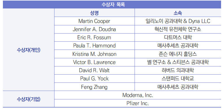∙ 2025년 1월 3일, 미국 특허상표청(USPTO)은 2024년 국가기술혁신상(National Medal of Technology and Innovation, NMTI) 수상자를 발표함 |