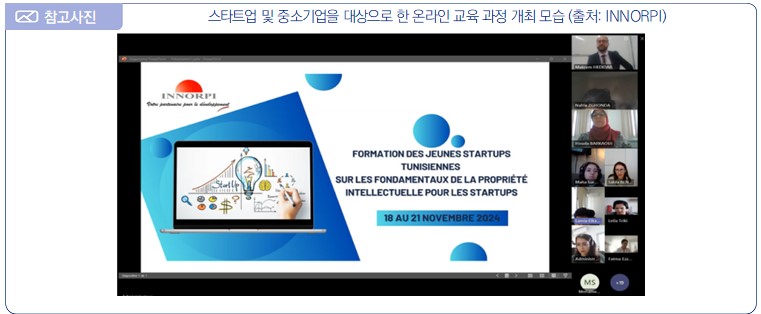 ∙ 2024년 11월 22일, 튀니지 특허청(L’Académie Nationale de la Propriété Intellectuelle, INNORPI)은 스타트업 및 중소기업을 위한 지식재산(IP)의 기초와 관련된 온라인 교육 과정을 개최하였다고 발표함