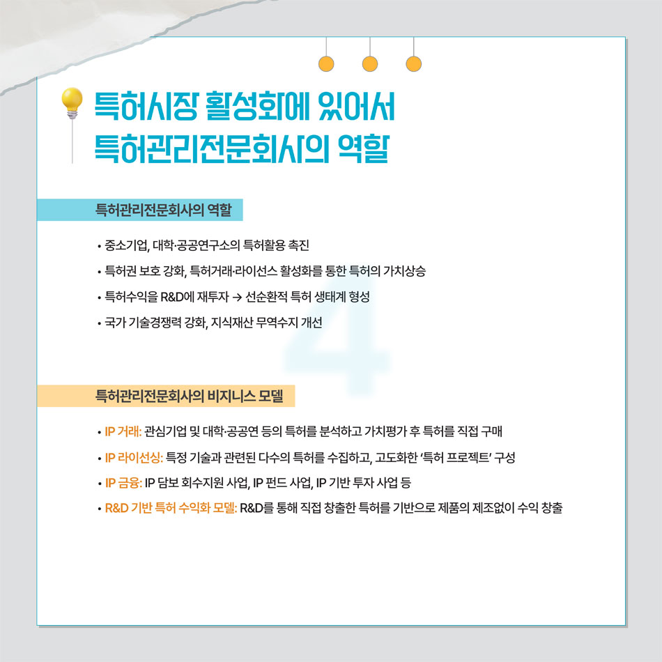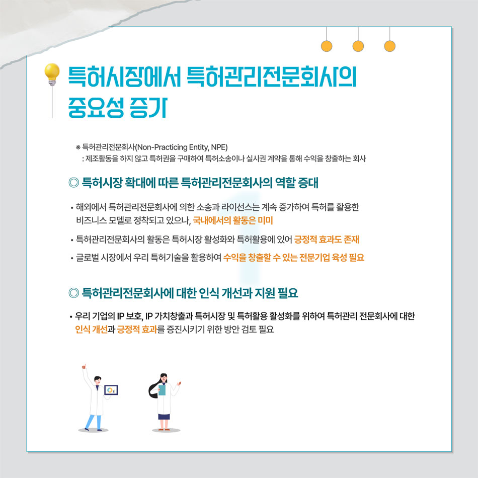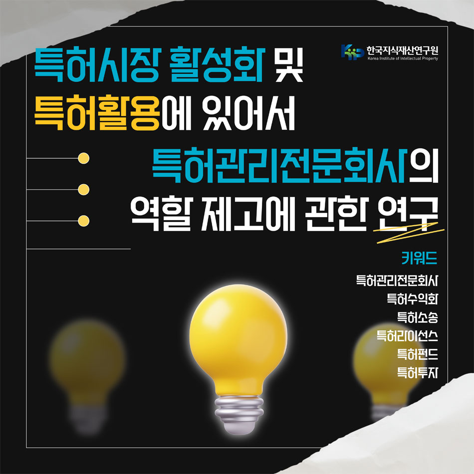 | [카드뉴스] 특허시장 활성화 및 특허활용에 있어서 특허관리전문회사의 역할 제고에 관한 연구 |