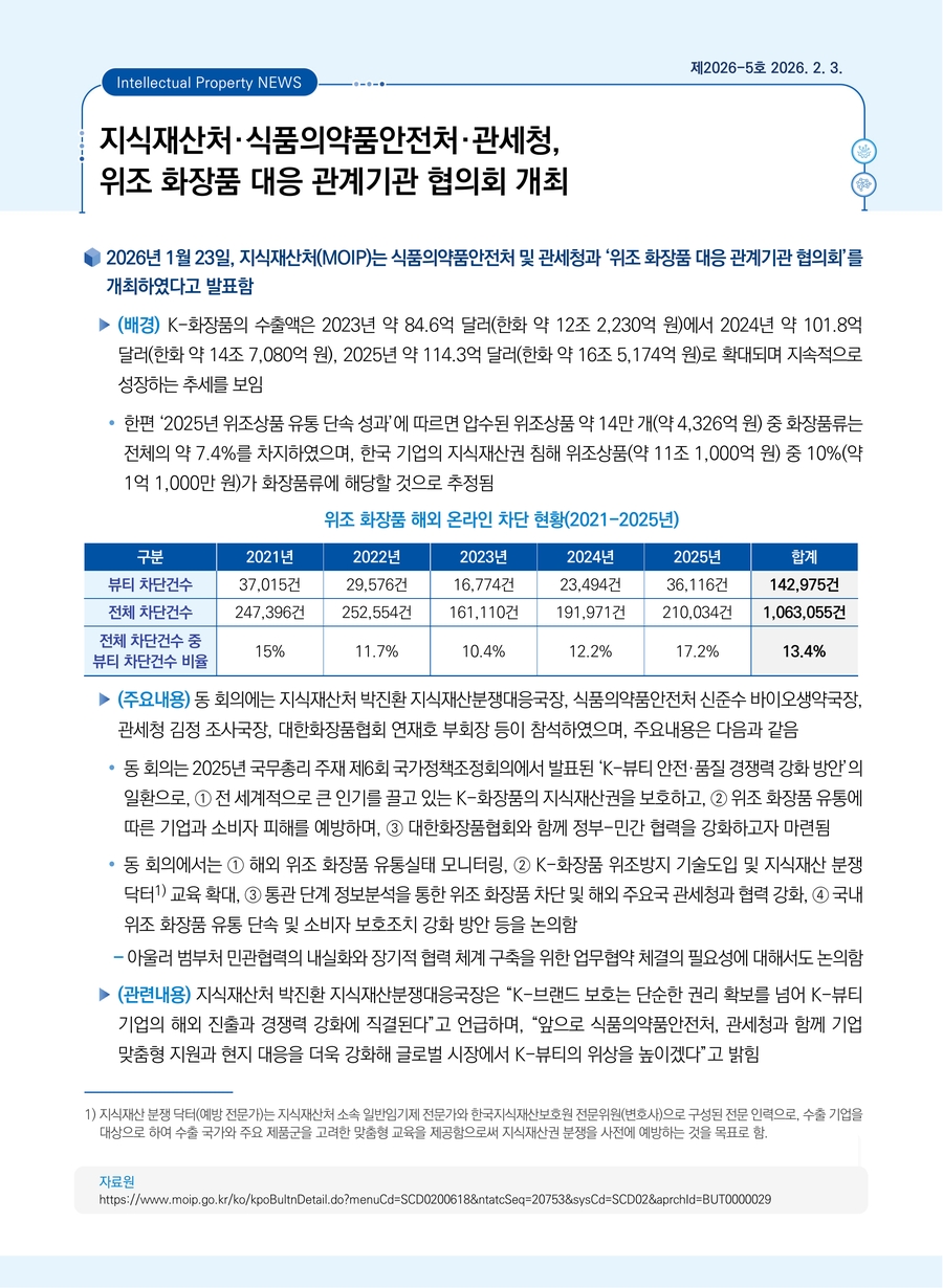 지식재산처·식품의약품안전처·관세청, 위조 화장품 대응 관계기관 협의회 개최