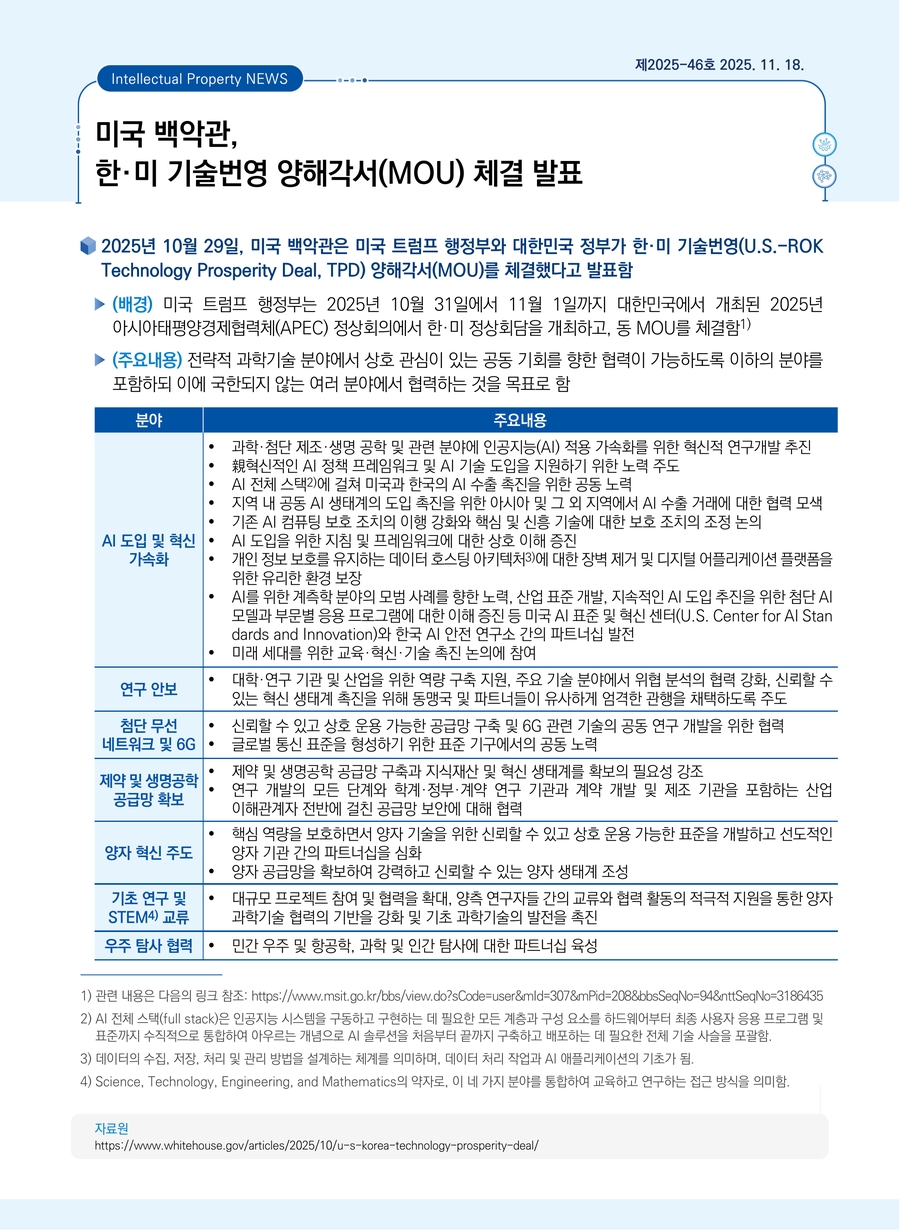 [국가전략기술] 미국 백악관, 한·미 기술 번영 양해각서(MOU) 체결 발표