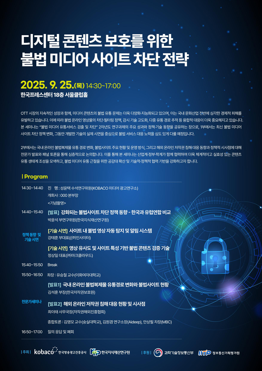 디지털 콘텐츠 보호를 위한 불법 미디어 사이트 차단 전략 세미나 개최 안내
