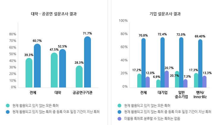 ¹Ý¸é, ±â¾÷¿¡¼´Â ÇöÀç Ȱ¿ëµÇ°í ÀÖÁö ¾ÊÀº ƯÇã Áß ÀÏÁ¤ ±â°£ÀÌ Áö³ ƯÇ㸦 ¹ÌȰ¿ë ƯÇã·Î ºÐ·ùÇÏ´Â °ÍÀÌ Å¸´çÇÏ´Ù´Â ÀǰßÀÌ 70.8%·Î ³ô°Ô ³ªÅ¸³µ´Ù. ±â¾÷Àº º¸À¯Çϰí Àִ ƯÇ㸦 Á÷Á¢ ½Ç½ÃÇϰųª ¶óÀ̼±½º À̿ܿ¡µµ ¹æ¾îÀû ¸ñÀûÀ¸·Î º¸À¯ÇÏ´Â µî ¾î¶² ¹æ½ÄÀ̵ç Ȱ¿ëÇϰí Àְųª ÇâÈÄ È°¿ëÇÒ °èȹÀ̹ǷÎ, ¹ÌȰ¿ë ƯÇã·Î ºÐ·ùÇÒ ¼ö Àִ ƯÇã´Â ¾ø´Ù´Â ÀǰßÀÌ »ó´ëÀûÀ¸·Î ¸¹¾Ò´Ù. ÀÌó·³ ±â¾÷, ´ëÇÐ, °ø°ø±â°üº°·Î ¹ÌȰ¿ë ƯÇãÀÇ °³³äÀº °¢°¢ ´Ù¸¥ °ÍÀ¸·Î ³ªÅ¸³µ´Ù.