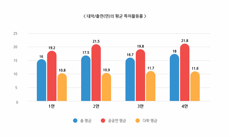 ƯÇãȰ¿ë·üÀÇ Æò±Õ°ªÀ» ÅëÇØ µµÃâµÈ °á°ú¸¦ »ìÆìº¸¸é ±â ü°áµÈ Àü¿ë½Ç½Ã±Ç ¼³Á¤ ƯÇã¿Í ±â¾÷°úÀÇ °øµ¿Æ¯Ç㸦 ¸ðµÎ °í·ÁÇÏ¿© Ȱ¿ë ƯÇã ¹× È°¿ë´ë»ó ƯÇã¿¡ Æ÷ÇÔ½ÃŲ 1¾ÈÀÌ °¡Àå ³·Àº °ªÀÎ 16.0%ÀÇ Æ¯ÇãȰ¿ë·üÀ» º¸¿´´Ù. ±â¾÷°úÀÇ °øµ¿Æ¯Ç㸦 Ȱ¿ë ƯÇã ¹× È°¿ë´ë»ó ƯÇã¿¡¼ Á¦¿ÜÇÑ 3¾ÈÀº 16.7%, ±â ü°áµÈ Àü¿ë½Ç½Ã±Ç ¼³Á¤ ƯÇ㸦 Ȱ¿ë´ë»ó ƯÇã¿¡¼ Á¦¿ÜÇÑ 2¾ÈÀÌ 17.5%, ¸¶Áö¸·À¸·Î ±â ü°áµÈ Àü¿ë½Ç½Ã±Ç ¼³Á¤ ƯÇã¿Í ±â¾÷°úÀÇ °øµ¿Æ¯Ç㸦 ¸ðµÎ Á¦¿Ü½ÃŲ 4¾ÈÀÌ 18.0%ÀÇ Æ¯ÇãȰ¿ë·üÀ» º¸ÀÌ´Â °ÍÀ¸·Î ³ªÅ¸³µ´Ù.